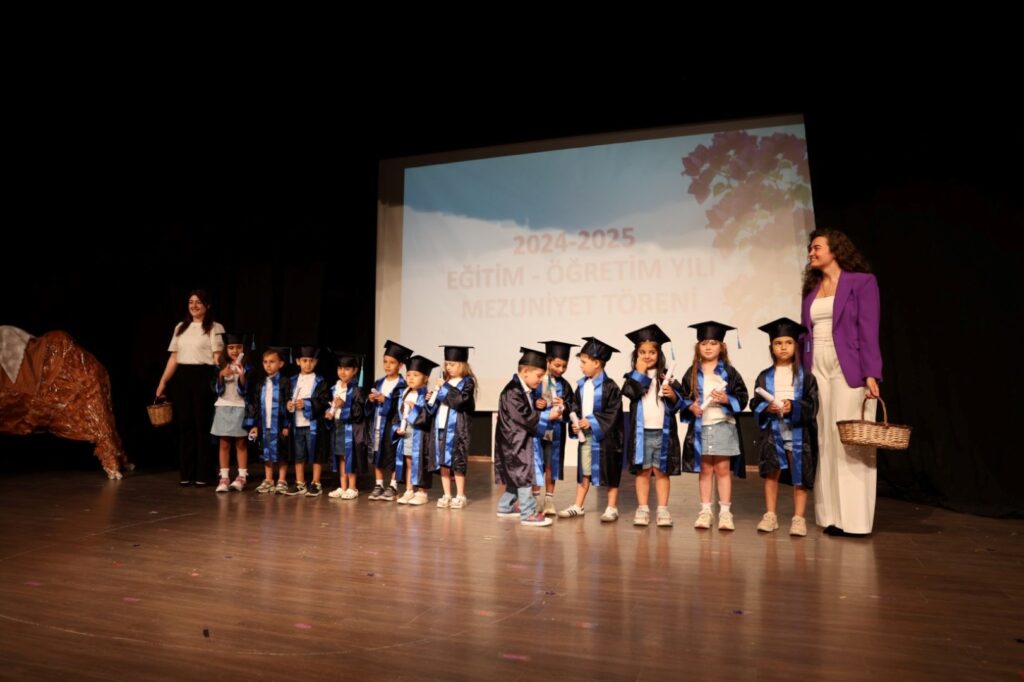 Bodrum Belediyesi Anaokullarından 2024-2025 eğitim-öğretim yılında mezun olan öğrenciler için yıl sonu gösterisi ve mezuniyet töreni yapıldı. Bodrum Belediye AŞ bünyesinde faaliyet gösteren Özel Bodrum Lale-Süreyya Turgut Anaokulu, Özel Bodrum Yüzüncü Yıl Cumhuriyet Anaokulu ve Özel Bodrum Konacık Anaokulu’nun yıl sonu gösterisi ve mezuniyet töreni 19 Haziran Çarşamba günü Nurol Kültür Merkezi’nde geniş bir katılımla gerçekleşti. Törene Bodrum Belediye Başkanı Tamer Mandalinci’yi temsilen Genel Koordinatör Emel Çakaloğlu, Belediye Gıda AŞ Genel Müdürü İbrahim Akbaş, anaokulu öğretmenleri, öğrenciler ve aileleri katıldı. Anaokullarında eğitim gören 5 yaş grubundan 90 öğrencinin sahne aldığı etkinlikte, öğrenciler tarafından hazırlanan yıl sonu gösterisi katılımcılar tarafından beğeniyle izlendi. Bodrum Belediye AŞ Anaokulları Koordinatörü Deniz Delibaş Turgay gerçekleştirdiği konuşmasında şunları söyledi: “Muğla Büyükşehir Belediyemiz ile Bodrum Belediyemizin yollarının kesiştiği bu kıymetli dönemeçte ortak bir vicdan, ortak bir yürek ve ortak bir akılla ilerliyoruz. Çünkü biz biliyoruz ki her çocuğun mutlu ve adil bir başlangıca hakkı var. Bu başlangıç sevgi ile örülmüş sınıflarda, sorumluluklarla dolu yüreklerde, bilgi ile aydınlanmış akıllarda filizlenir. Bodrum sadece bir coğrafya değil, bir ruhtur. Beyaz duvarlarında yaslanan begonviller her sabah çocukların sesiyle uyanır. Rüzgarlarında umut, güneşinde azim, toprağında kök salan birlik vardır. Ve bizler bu topraklarda her çocuğun ışıkla büyümesi için çalışıyoruz.” Sosyal belediyecilik anlayışıyla çalışmalarını büyük bir özveri ile sürdürdüklerini belirten Genel Koordinatör Emel Çakaloğlu, konuşmasında şu ifadelere yer verdi: “Bugün üç anaokulumuzdan mezun olan çocuklarımızın hayatlarına bir nebze katkı sunabildiysek ne mutlu bize. ‘Her çocuk eğitimi hak eder’ anlayışıyla çıktığımız bu yolda, ektiğimiz tohumların birer fidana dönüştüğünü görmek bizler için büyük bir gurur kaynağı. Çocuklarımızla birlikte büyüdük, gelişip yeşerdik. Bundan sonra da her zaman olduğu gibi geleceğimizin teminatı olan çocuklarımızın yanında yer almaya devam edeceğiz. Onların mutluluğu ve başarısı için tüm gücümüzle çalışacağız. Bu vesileyle; anaokullarımızda özveriyle görev yapan ve çocuklarımızın hayatına dokunan kıymetli çalışma arkadaşlarımıza, bu güzel organizasyonda emeği geçen herkese yürekten teşekkür ediyorum. Mezun olan yavrularımıza da eğitim hayatları boyunca başarı, mutluluk ve sağlık diliyorum.”