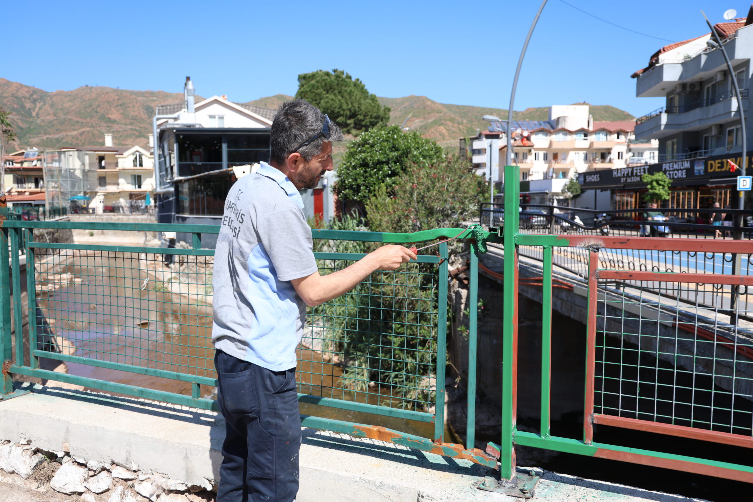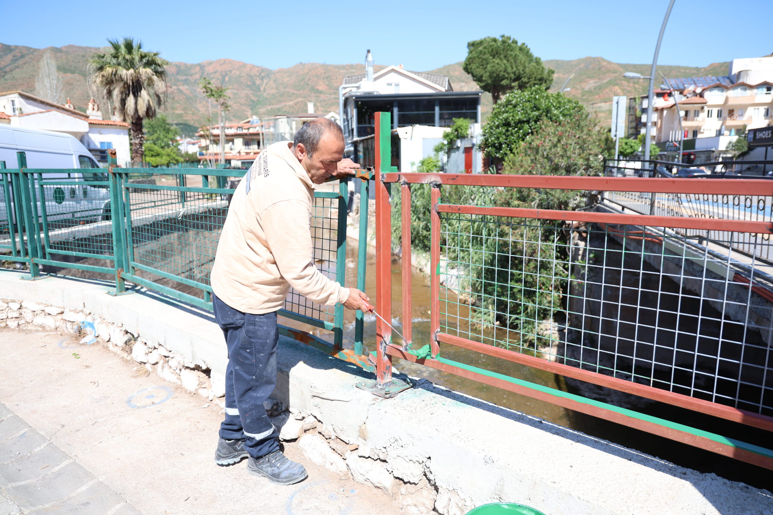 Marmaris Belediyesi, vatandaşların güvenliğini sağlamak ve yaşam kalitesini artırmak amacıyla ilçenin dört bir yanında saha çalışmalarına hız verdi. Bu kapsamda, İçmeler Mahallesi Gezi Yolu Caddesi üzerindeki dere kenarında bulunan ve zamanla doğa şartlarına bağlı olarak yıpranan ahşap korkuluklar ile dinlenme alanlarındaki banklar mercek altına alındı.