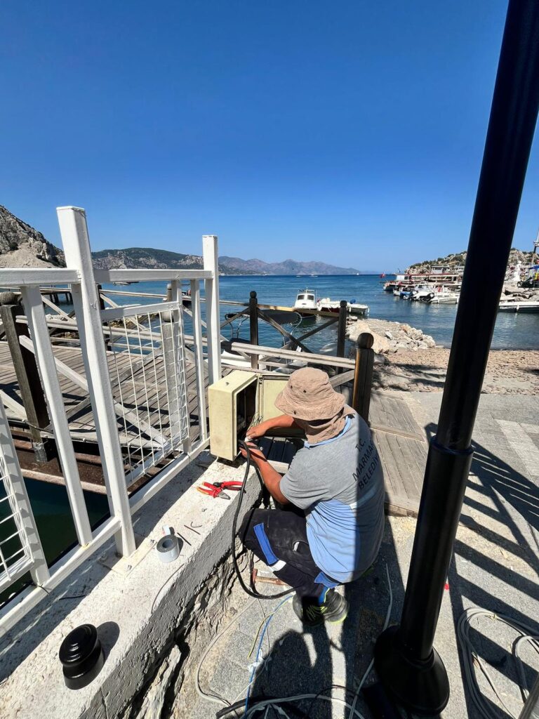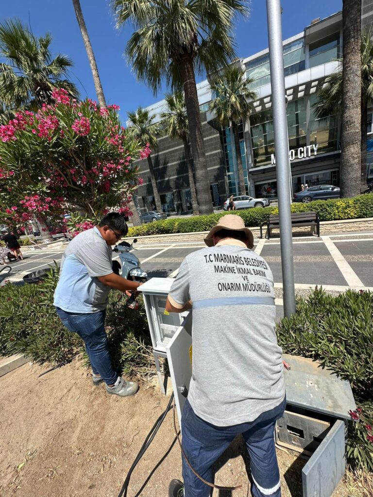 Marmaris Belediyesi’ne bağlı elektrik birimi, yaz sezonuyla birlikte artan yoğunluğa rağmen gece gündüz demeden arızalara anında müdahale ediyor. Marmaris Belediyesi Makine İkmal Bakım ve Onarım Müdürlüğü’ne bağlı elektrik birimi ekipleri, ilçe genelindeki park, yeşil alan, refüj ve sosyal donatı alanlarında meydana gelen elektrik arızalarına 7 gün 24 saat esaslı bir çalışma disipliniyle müdahale ediyor.