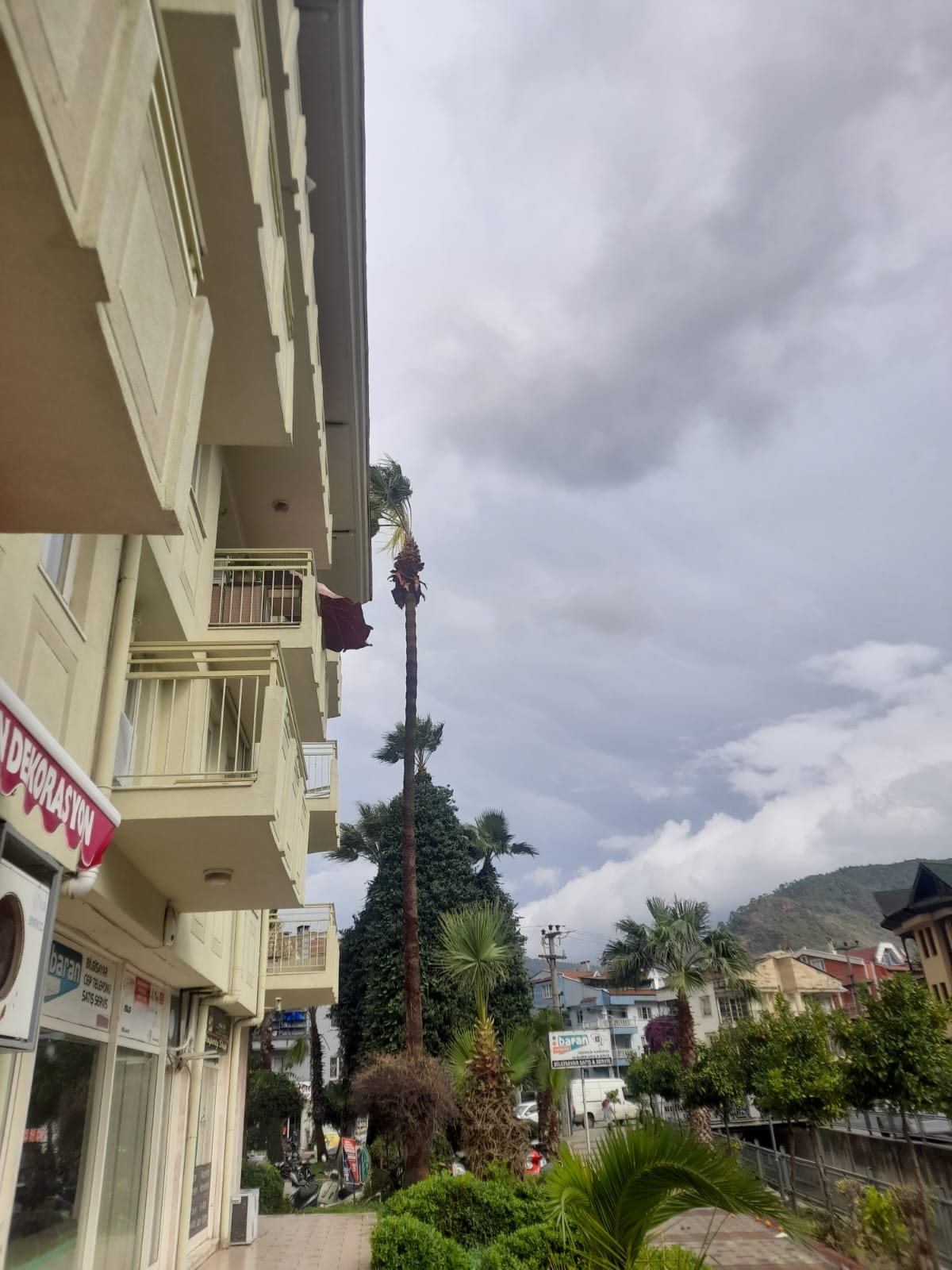 Sağanak yağmurla birlikte artan rüzgâr, ilçede çok sayıda ağacın devrilmesine ve budanmamış palmiye dallarının koparak çevreye saçılmasına neden oldu. Bir kadının başına palmiye dalı düşerken, Kapalı Çarşı’da her yağmurda olduğu gibi su baskınları meydana geldi. Esnaf, suyun dükkânlara girmemesi için yoğun çaba sarf etti.