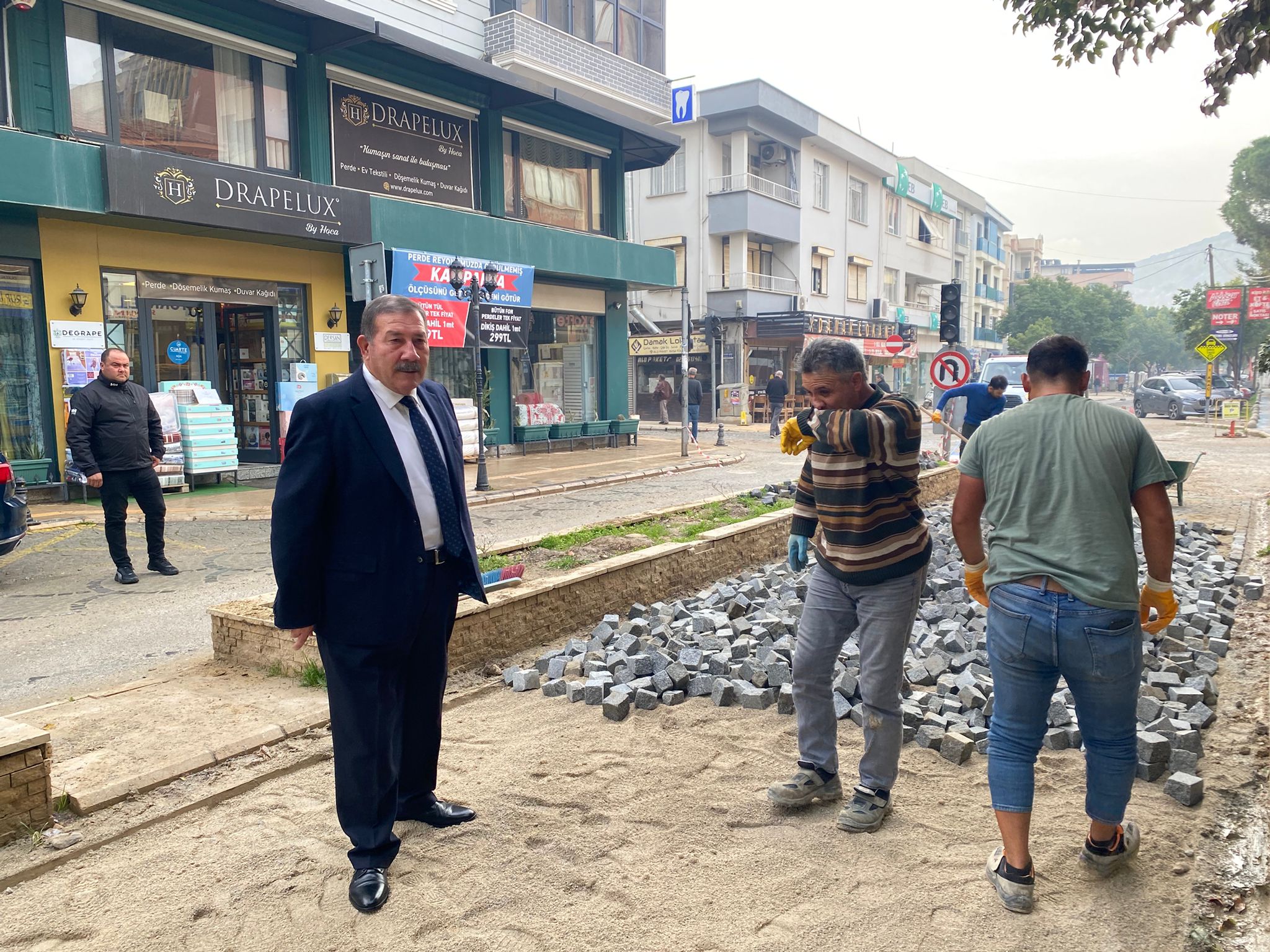 Milas Belediye Başkanı Fevzi Topuz, yeni haftanın ilk mesai gününde çalışma yapılan Menteşe Caddesi’nde incelemelerde bulundu. Milas’ta trafiğin en yoğun olduğu caddelerden biri olan alanda granit bazalt küp taş ile yol tamiratlarını denetleyen Başkan Topuz, ekiplerden çalışmaların ilerleyişi hakkında bilgiler aldı. Vatandaşlarla da bir süre sohbet eden Milas Belediye Başkanı Fevzi Topuz, çalışmaların hızla tamamlanarak alanın vatandaşların kullanımına sunulacağını ifade etti.