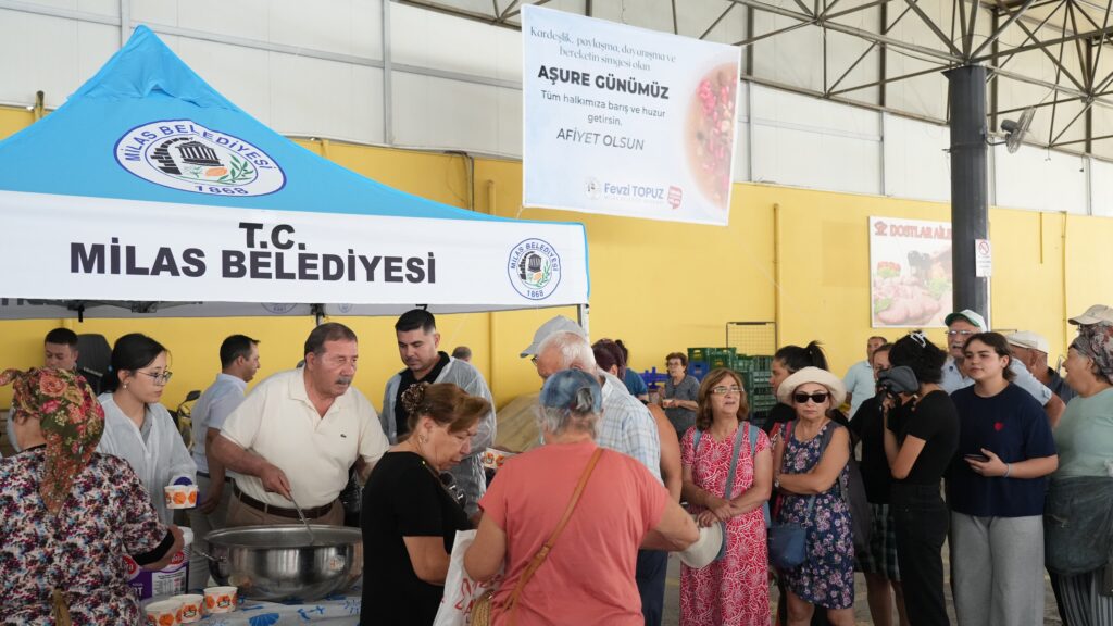 Milas Belediyesi birlik, beraberlik ve paylaşmanın en güzel simgelerinden olan Muharrem ayı dolayısıyla vatandaşlara aşure ikramında bulundu. Milas Belediye Başkanı Fevzi Topuz’da aşure ikramına katılarak vatandaşlara aşure dağıtımı gerçekleştirdi. Buğday, nohut, fasulye, incir, tarçın ve şeker gibi 40’a yakın gıda malzemesiyle hazırlanan, bolluk bereketin simgesi aşure ikramı Kapalı Salı Pazarı Yeri’nde yapıldı.  Üç farklı noktadan gerçekleşen aşure ikramına vatandaşlar yoğun ilgi gösterdi.  Aşure ikramında konuşan Milas Belediye Başkanı Fevzi Topuz “Kardeşliğin, dostluğun, birlik ve beraberliğin simgesi Muharrem Ayı’nda aşure ikramımızı gerçekleştirdik. Kapalı Pazar Yeri’nde vatandaşlarımıza aşure ikram ederek halkımızla bir araya geldik. İkramımıza yoğun ilgi gösteren vatandaşlarımıza teşekkür ediyorum” dedi. Milas Belediye Başkanı Fevzi Topuz, aşure ikramından önce ise pazarı ziyaret etti. Esnaf ve vatandaşları selamlayan Başkan Topuz tüm pazar esnafına hayırlı işler temennisinde bulunarak vatandaşların taleplerini dinledi.