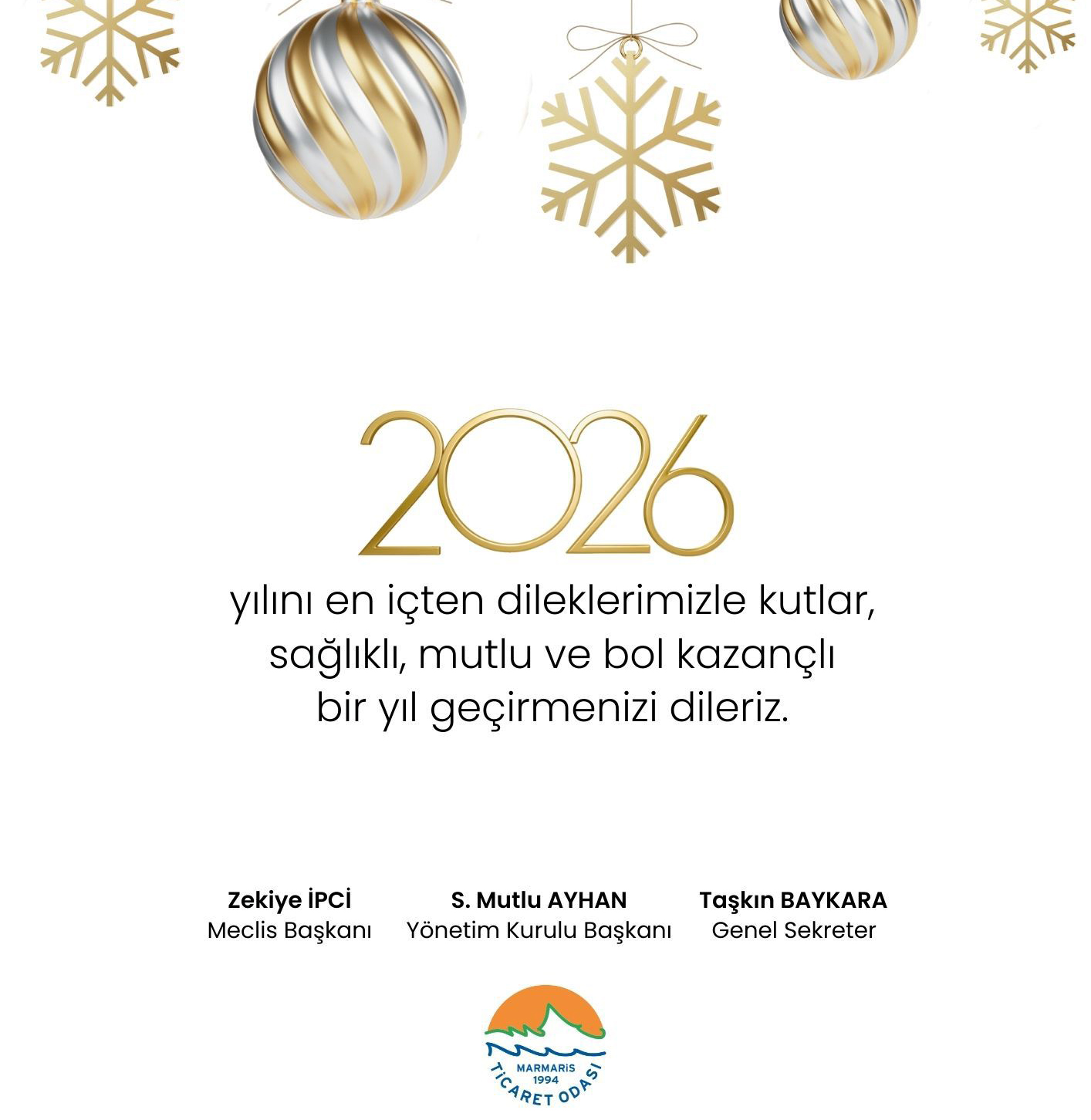 Marmaris Ticaret Odası (MTO) Yönetim Kurulu Başkanı S. Mutlu Ayhan, 2026 yılına dair temennilerini paylaştığı yeni yıl mesajında, geride bırakılan yılın yoğun çalışma temposu ve ekonomik zorluklarla geçtiğine dikkat çekti. Ayhan, “2026 yılının tüm olumsuzluklardan uzak, sağlık ve huzur dolu, bol kazançlı bir yıl olmasını temenni ediyorum” dedi.