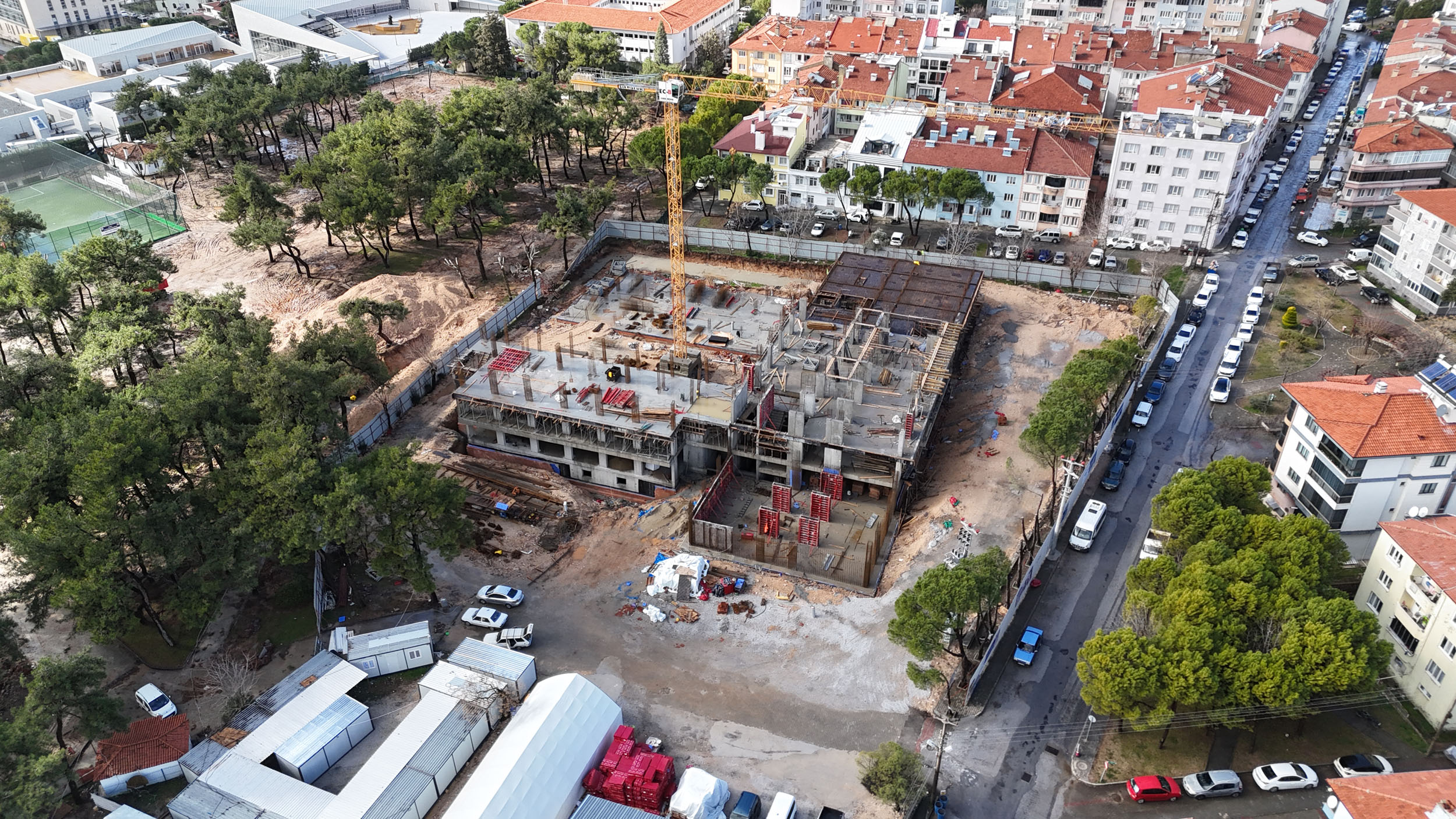 Proje kapsamında A, B ve C bloklarda inşaat çalışmaları planlanan etaplar doğrultusunda aralıksız devam ediyor. Yapıların önemli bir bölümünde zemin kat seviyesine ulaşılırken, diğer bloklarda da bu aşamaya yönelik imalatlar kesintisiz şekilde sürdürülüyor. Aynı zamanda bodrum katlara ilişkin yapısal çalışmalar ile su yalıtımı ve çevre düzenlemelerine yönelik uygulamalar eş zamanlı olarak yürütülüyor. Projede tüm imalatlar, belirlenen iş programı doğrultusunda koordineli ve hızlı bir şekilde ilerliyor.