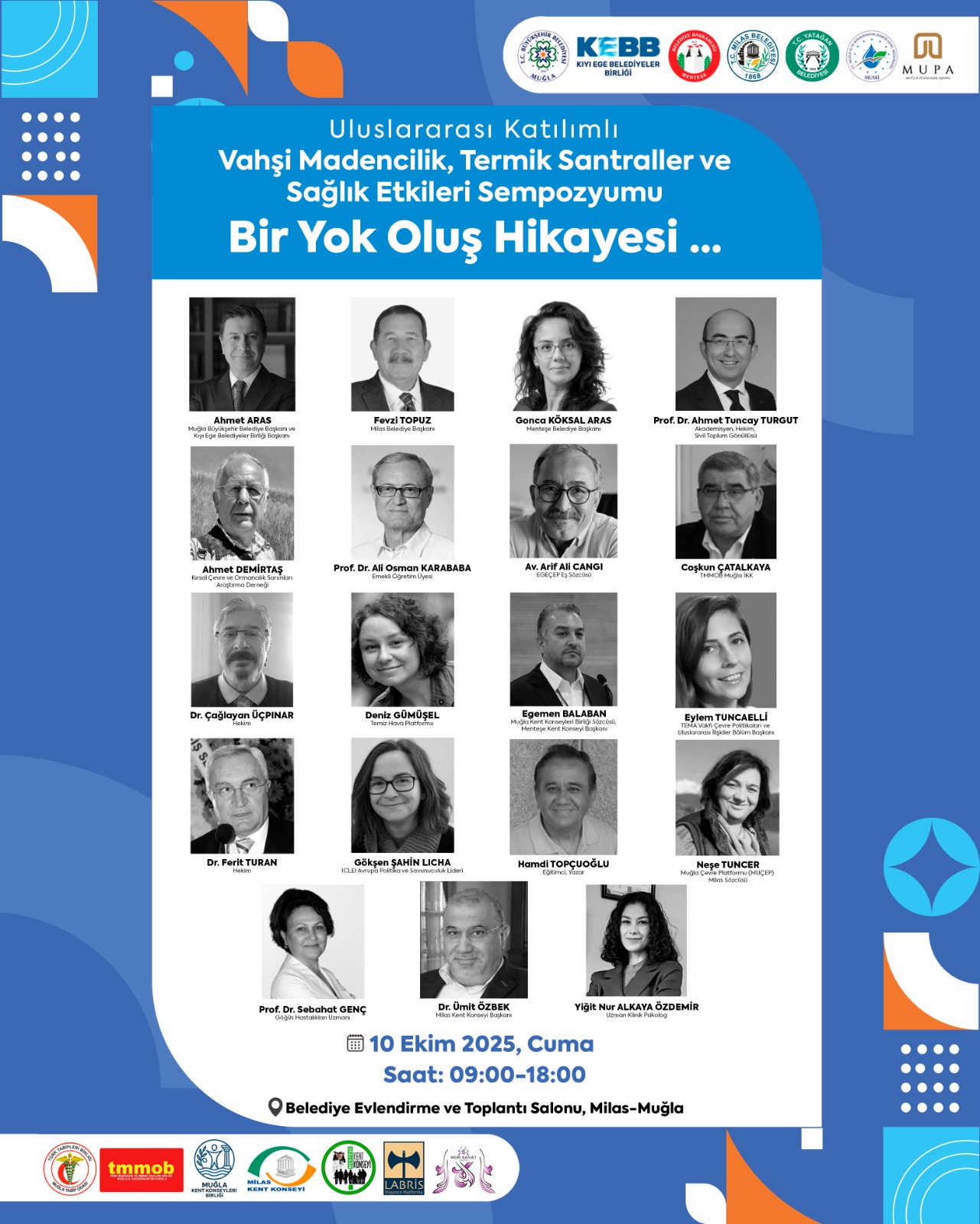 Muğla Büyükşehir Belediyesi tarafından uluslararası katılımlı olarak 10 Ekim 2025 Cuma günü Milas’ta “Vahşi Madencilik, Termik Santraller ve Sağlık Etkileri Sempozyumu gerçekleştirilecek.